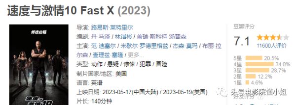 所以,这次《速激10》豆瓣开分7.1,比《速激9》高,证明这次至少比上一部让粉丝们满意。