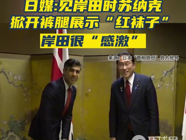 《日刊体育》称,广岛出身的岸田文雄是当地棒球队的铁杆粉丝,红色也是该球队的主题色。看到苏纳克的这双袜子,岸田笑着感谢苏纳克“特意穿着这双袜子前来”。