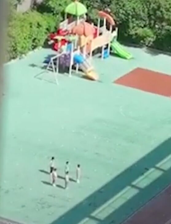 该工作人员说:“我们幼儿园没有体罚,可能是有点误会。我也问了这个班级的老师,今天早上老师留下了几个孩子,练习拍篮球的,‘六一’的一个小活动,后面老师就带着小朋友在那拍篮球。”