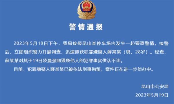 5月19日晚,江苏省苏州昆山市公安局发布一则警情通报,全文如下: