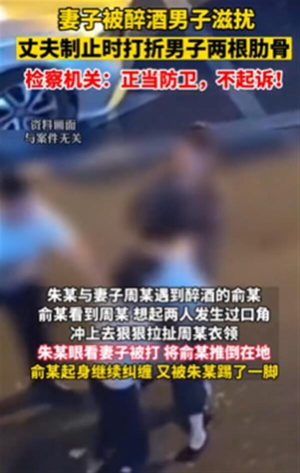 导读:近日,浙江台州,妻子被醉酒男子路边拉扯殴打,丈夫踢了一脚致男子断了两根肋骨,检方:正当防卫不起诉。