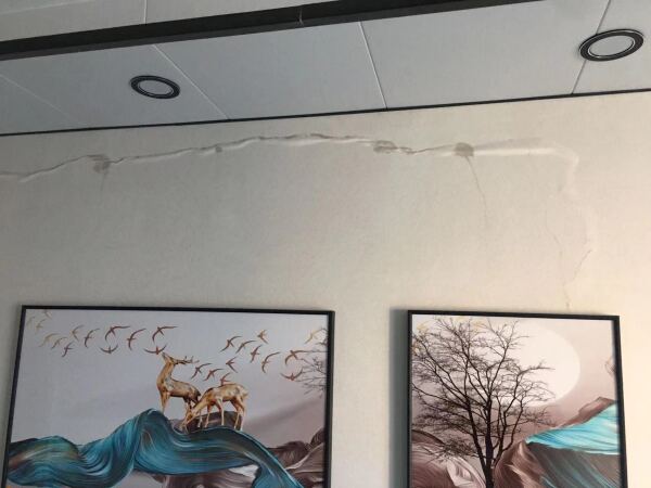 董丽家客厅的墙壁已经鼓包、开裂 图源:受访者提供