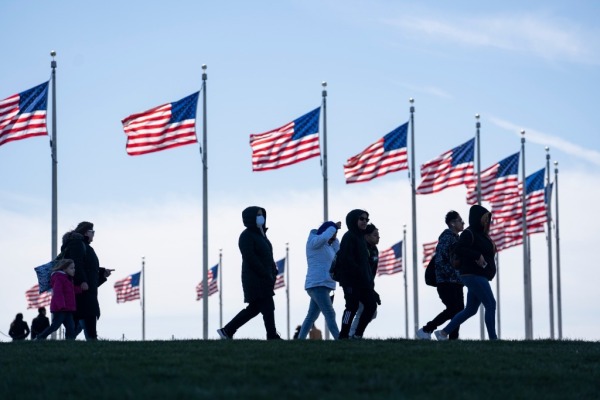 这是2022年3月29日,行人走在美国首都华盛顿的国家广场。新华社记者刘杰摄