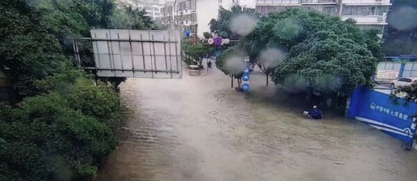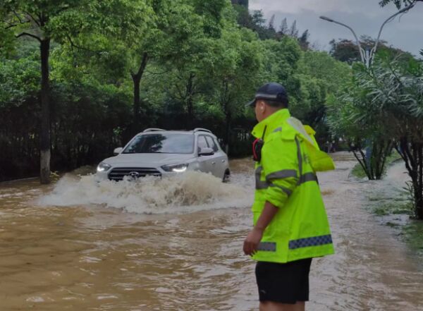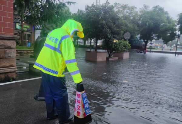 2023年5月22日,广西桂林,受暴雨影响,城市道路积水严重。广西桂林交警 图