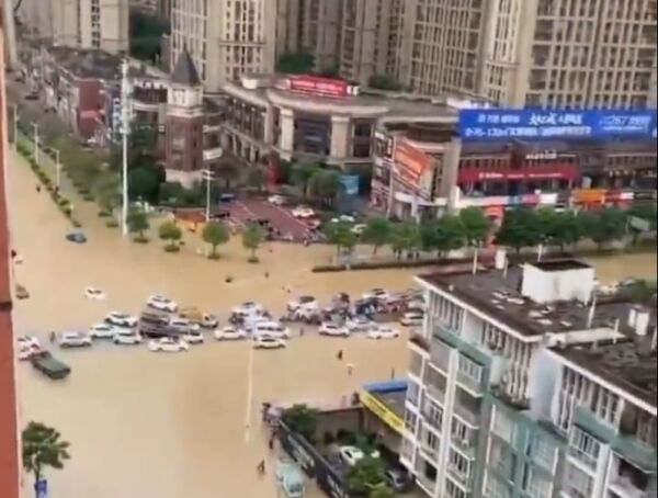 2023年5月22日,广西桂林,暴雨过后,市区出现内涝。视频截图